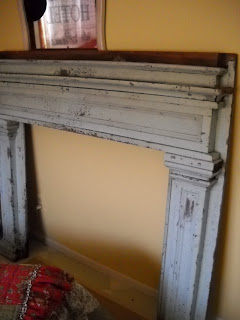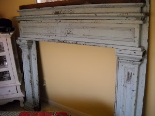 Let us start with this awesome mantel/fireplace surround that I found last Sunday at the Rose Bowl Flea Market. It is over 100 years old and has the perfect chippy, worm holes, and aquaish color to it.